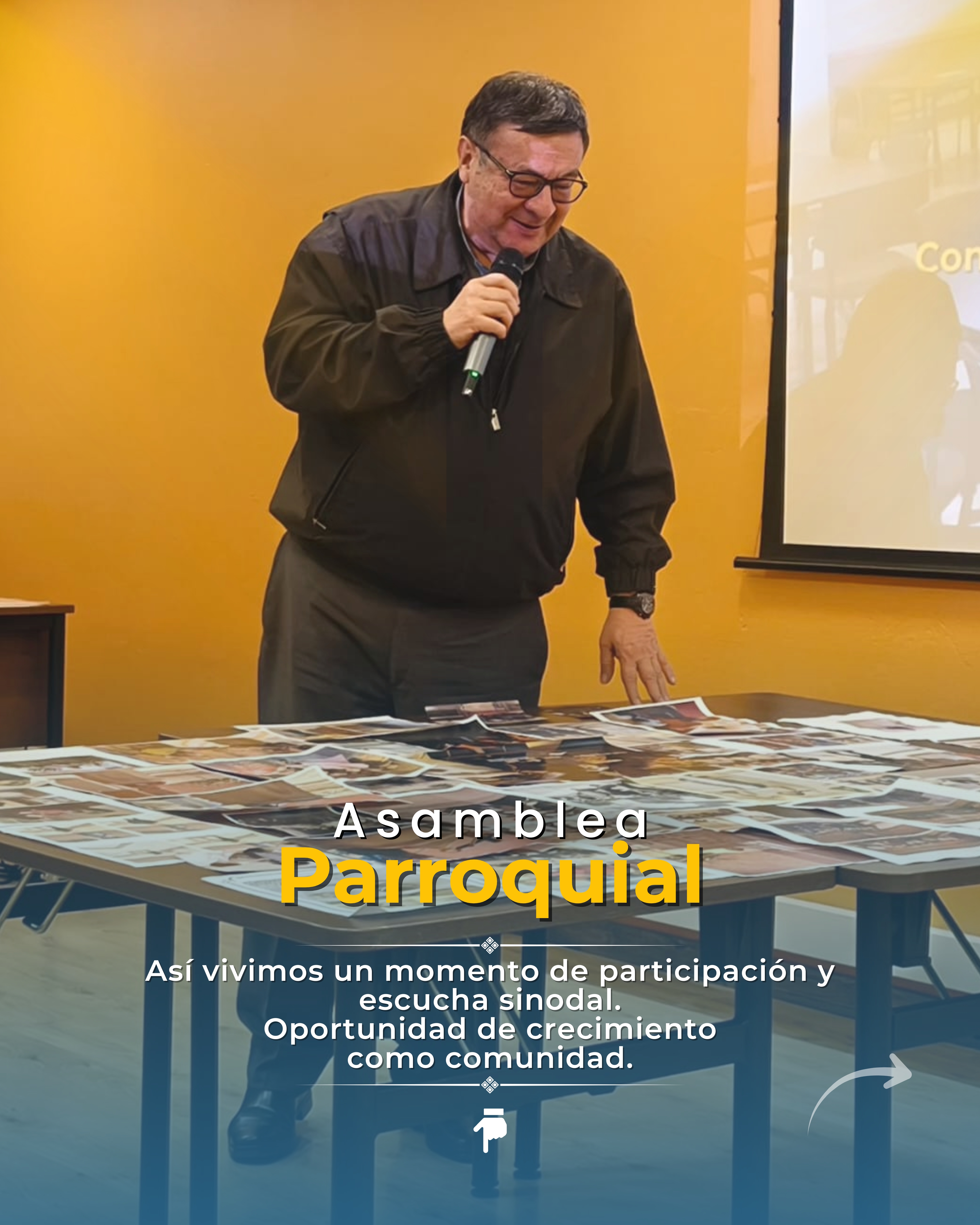 Al terminar la socialización, todas las fotografías fueron reunidas para formar un gran collage visible para todos los asistentes. Este gesto permitió contemplar de manera gráfica cómo ha sido la vida parroquial en los últimos años: una historia tejida por la fe, el servicio, la oración y la comunión. Cada imagen dio testimonio de lo que Cristo ha obrado en medio de su pueblo.